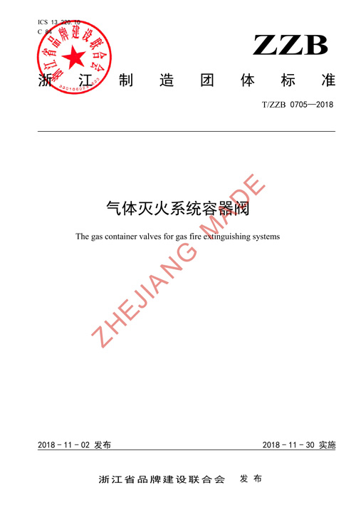 (主持)“浙江制造”標(biāo)準(zhǔn) 0705—2018《氣體滅火系統(tǒng)容器閥》